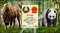 邮票介绍:白俄罗斯与中国建交20周年,国徽、欧洲野牛及大熊猫釉质涂层小型张