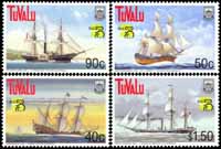邮票介绍:澳大利亚世界邮展,海姆斯克尔克帆船、奋进号帆船及蒸汽船(库克船长首次航行至澳大利亚的帆船)及加盖邮展徽志4全