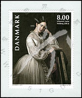 丹麦19世纪杰出女演员琼安·路易丝·海贝格诞生200周年,肖像不干胶自贴票1全
