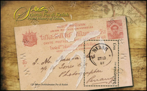 吉打州的邮政史,早期吉打州实寄邮资明信片以及邮戳小型张