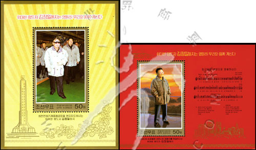 伟大领袖金正日永远与我们在一起,金正日出访照片2枚小型张