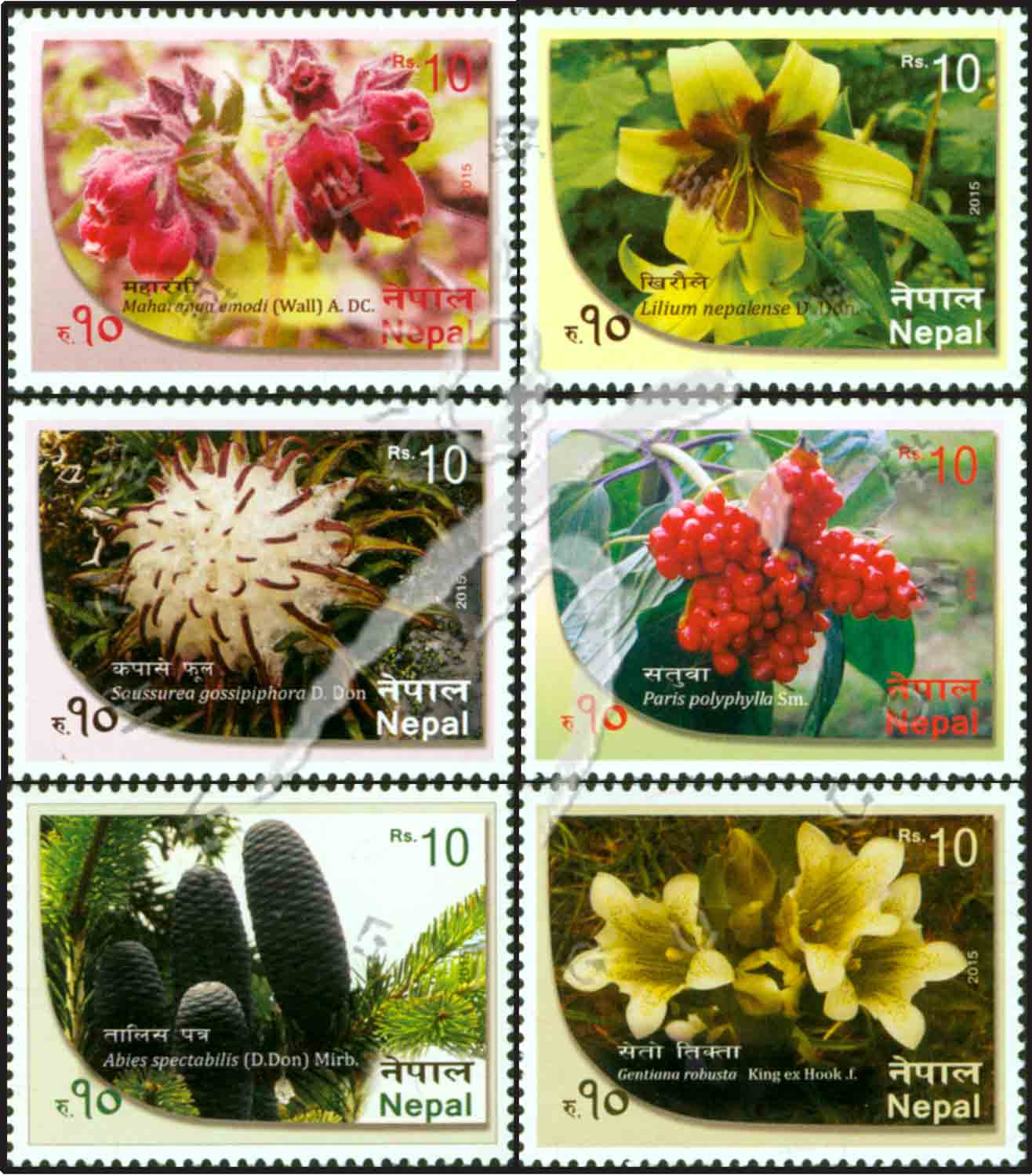尼泊尔花卉,粗壮秦艽、西藏冷杉、雪兔子、紫斑百合、七叶一枝花及污花胀萼紫草 6全