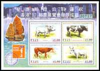 香港1997亚洲国际邮展及牛年生肖,婆罗门牛、荷兰牛、海福特牛、斐济犍牛、邮展徽志及帆船小全张(4票)(我社已售缺)