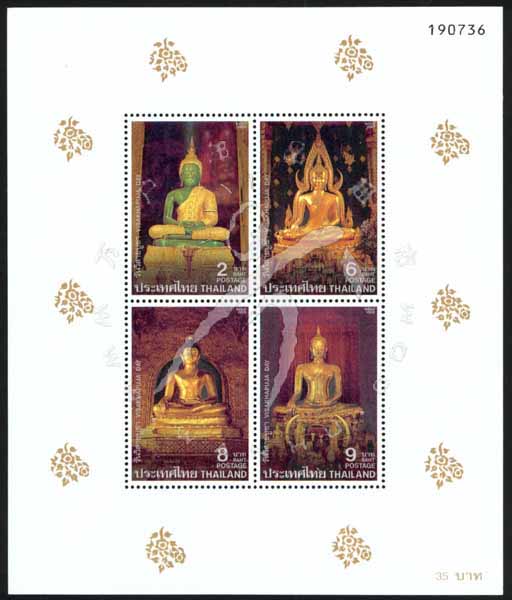 佛像,玉佛寺的玉佛像、华西拉丹那玛哈泰寺的法拓沁那拉佛像、普拉辛寺的僧伽罗佛像及金佛寺的佛像小全张(4票)