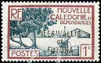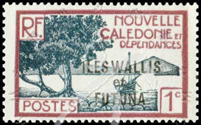 Sc#43 新喀里多尼亚票海湾风光加盖普票1c 1枚