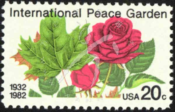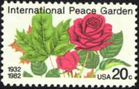 国际和平公园(美国北达科他州与加拿大曼尼托巴省联合建立)50周年,象征加拿大的枫叶及红玫瑰1全