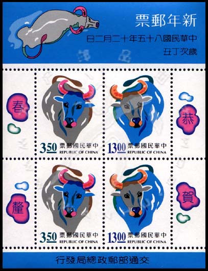 牛年生肖,卡通牛小全张(2套共4票)