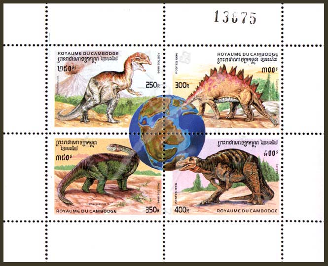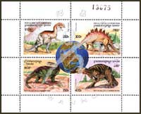 恐龙系列一,双脊龙、沱江龙及角鼻龙小全张(4票)