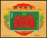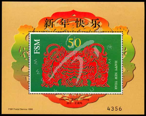虎年生肖系列一,剪纸虎(由中国王虎鸣设计)小型张