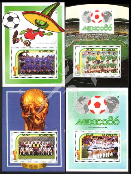 墨西哥世界杯,墨西哥、西班牙、英格兰、苏格兰队全家福4枚小型张