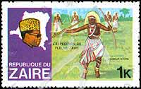 Sc#902 蒙博托总统和地图、舞蹈者1k (9-1) 1枚