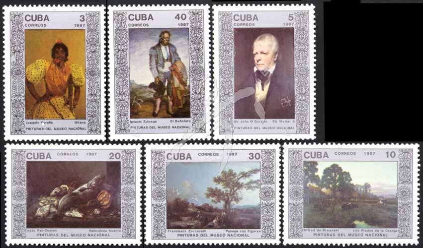 国家博物馆藏画,苏罗拉绘《戈皮斯》、高登绘《斯科特先生》、巴瑞斯基绘《草地》、小杜尼绘《静物》、弗朗西斯科绘《风景》及《秋》6全