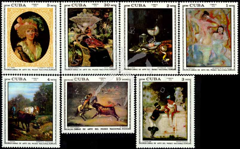 国家博物馆藏画,恩利格斯绘《泻湖游泳者》、《静物》、《尊贵的女人》、《傍晚回归》、《伊利莎白》、《骑马斗牛士》及《在花园》7全