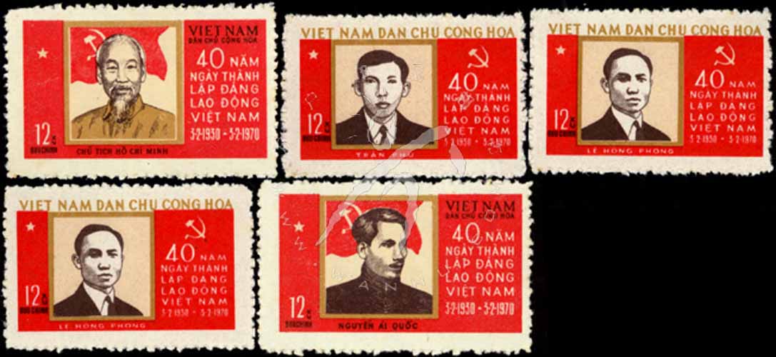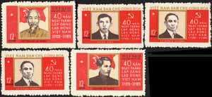 劳动党40周年,党旗、著名领袖胡志明等5全