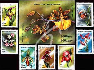 兰花,兜兰、杓兰、红花头蕊兰、虾脊兰、紫点杓兰、文心兰及虎斑瘤瓣兰等大全套(7全+小型张无齿)