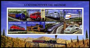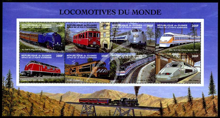 火车系列一,英国、瑞士、加拿大、日本、德国、葡萄牙、美国及法国等国火车小版张(8票)