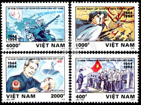 越南人民军建军50周年,国旗、战役图及坦克等4全
