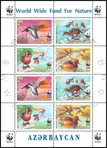 白眼潜鸭,WWF野生动物基金会徽志小版张(2套共8票)