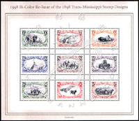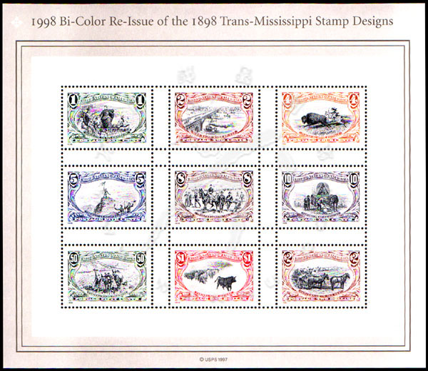 横越密西西比河两岸风光(美国历史上最漂亮的邮票1898年发行的邮票图案再次印刷发行,9票)小版张