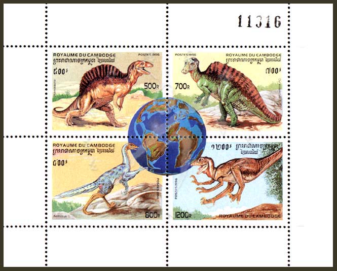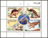 恐龙系列二,棘龙、无畏龙、拟鸟龙及恐爪龙小全张(4票)