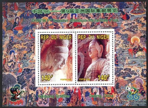 中国1996第9届亚洲国际邮展,大同云岗石窟小全张(2票)