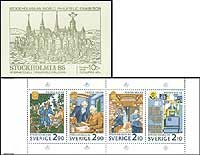 斯德哥尔摩1986世界邮展,徽志、邮局、邮递员及铁道运邮车等小本票(4票)