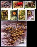 蜘蛛,跳蛛、圆蛛、十字圆蛛及小遁蛛等大全套(7全邮票+小型张)