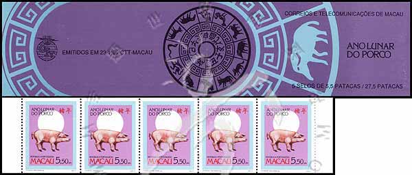 猪年生肖小本票(5票,本票封面为猪及十二生肖图)