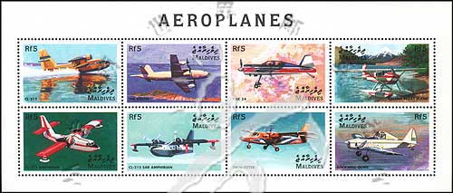 飞机,双发动机两栖消防飞机、水上飞机、双水獭飞机及轻型飞机等小版张(8票)