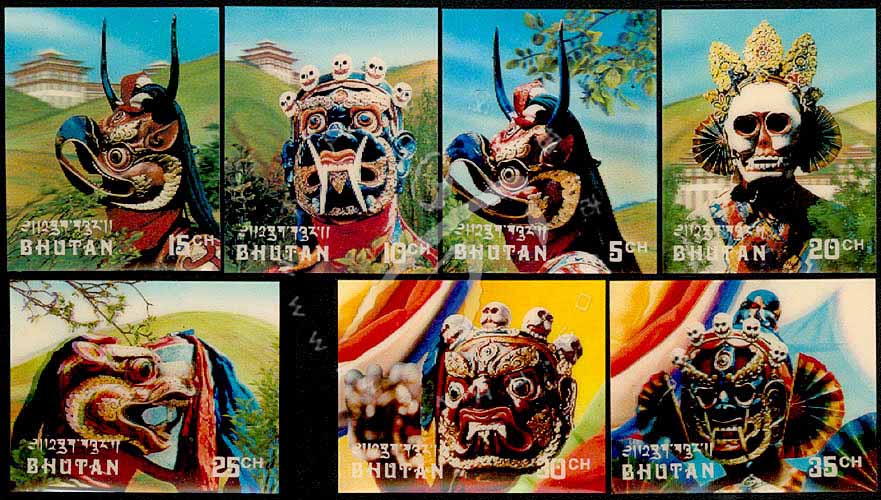 庆典面具,神龙、恶魔、骷髅、猛虎及阎王面具三维立体邮票7枚