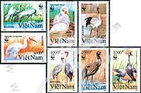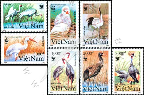 鸟类—鹤,白枕鹤、小赤颈鹤、丹顶鹤、成年赤颈鹤、黑颈鹤、灰冕鹤、白鹤及WWF野生动物基金会徽志7全