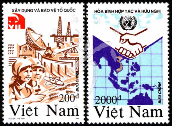 贯彻越共7大决议,联合国徽志、版图、工人及工厂等2全