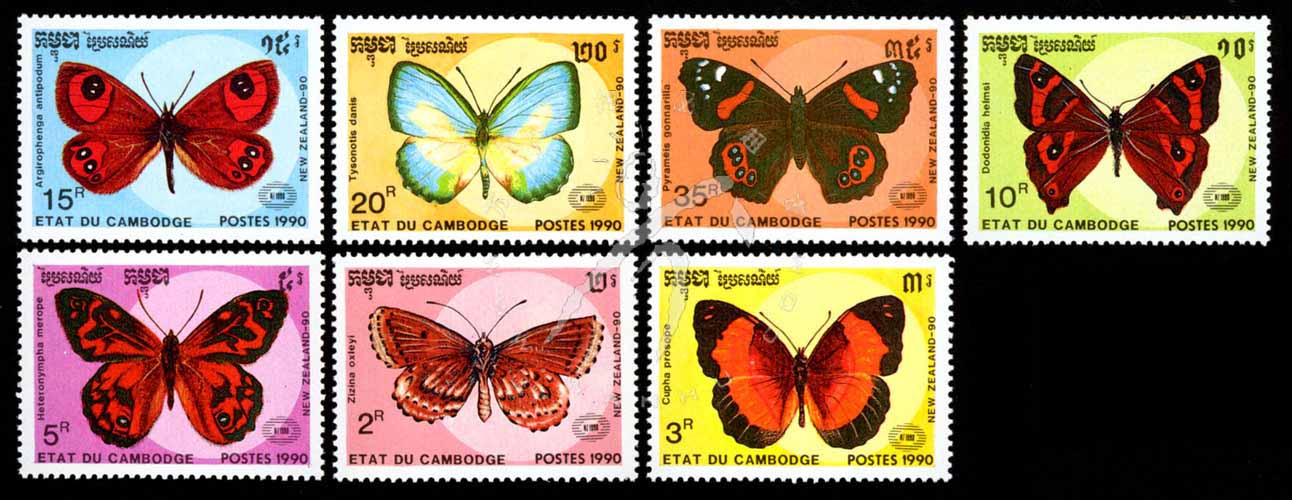 新西兰世界邮展—蝴蝶,徽志、小灰蝶、蛱蝶、眼蝶、蚬蝶、凤蝶及绢蝶7全