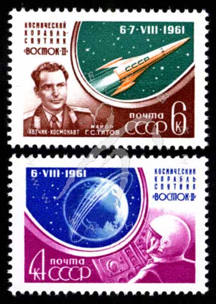 宇航员格·季托夫乘“东方-2”号宇宙飞船首飞,在太空中、宇宙飞船及季托夫肖像2全