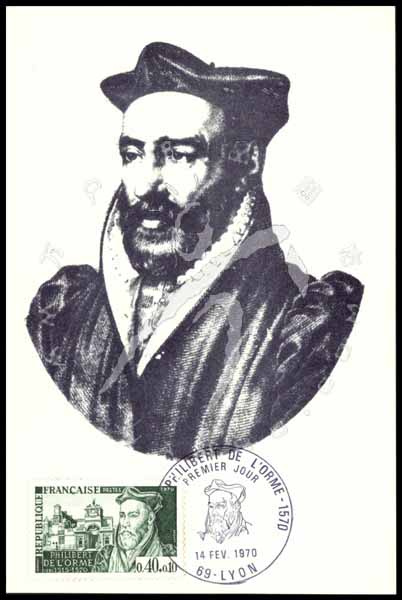 名人系列红十字附捐票,法国文艺复兴时期建筑师菲利伯特·德洛姆极限片1全