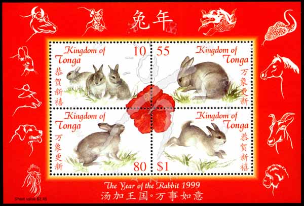 兔年生肖,兔及十二生肖简笔画小全张(4票)