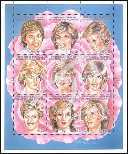 戴安娜王妃逝世系列二,经典照片小版张(9票)