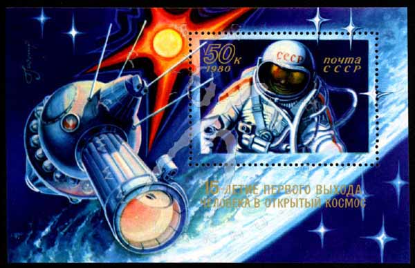 人类首次进入太空15周年,宇航员列昂诺夫小型张