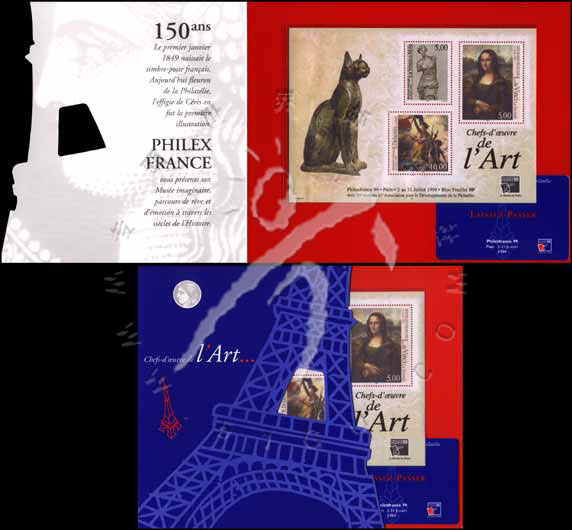 法国世界邮展卢浮宫藏品《蒙娜丽莎》、《自由领导人民》、《米洛岛的维纳斯》M+邮折(邮折内有法国世界邮展磁卡型入场券)