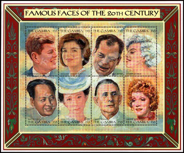 二十世纪著名人物毛泽东,宋庆龄.肯尼迪,戴高乐,梦露等(含8票) SH