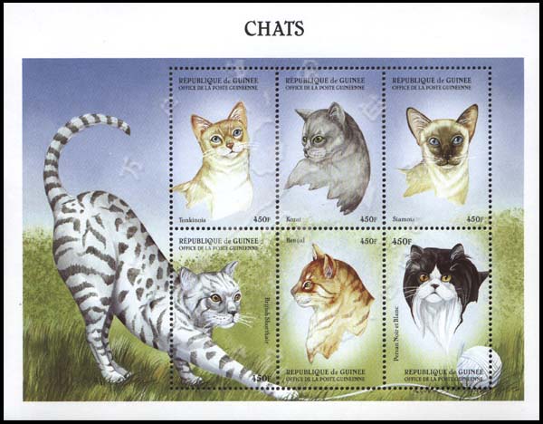 猫,东奇尼猫、柯拉特猫、暹罗猫、英国短毛猫、孟加拉貓及波斯猫小版张(6票)