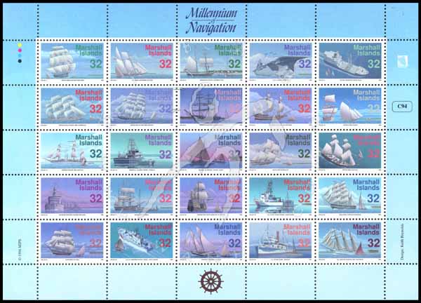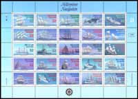 帆船轮船,英商船不列颠尼亚号、美海军纵帆船海豚号、美列克星敦号航空母舰、帕姆号运输船、英舰康华丽号及英舰毒蛇号等小版张(25票)