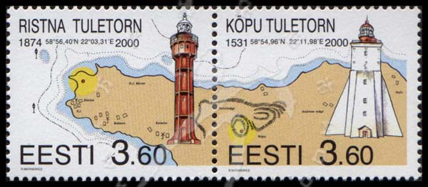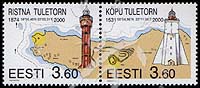 灯塔系列,1874年Ristna地区及1531年Kopu地区灯塔,式样、位置图及经纬度等2联