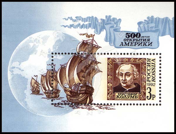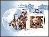 哥伦布发现美洲大陆500周年,哥伦布肖像及其探险帆船小型张