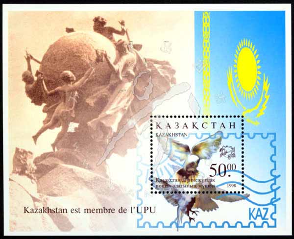 加入万国邮联,万国邮联徽志及哈国旗小型张