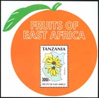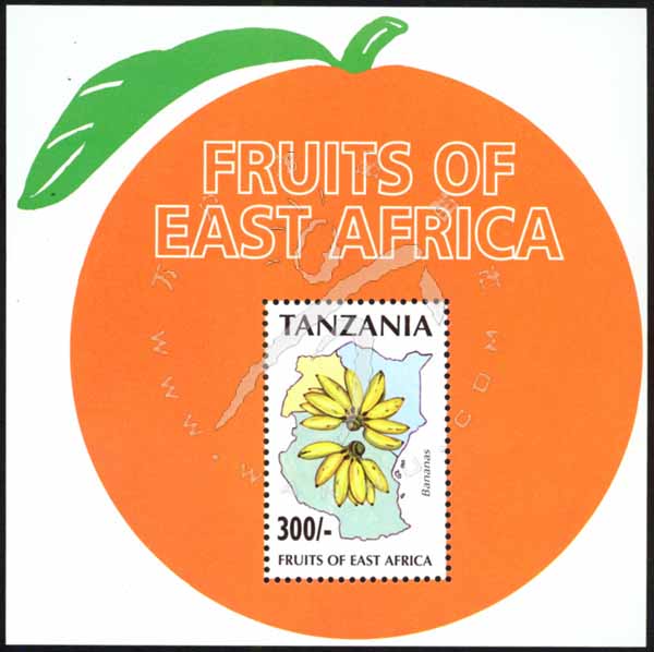 东非水果,香蕉及分布图小型张