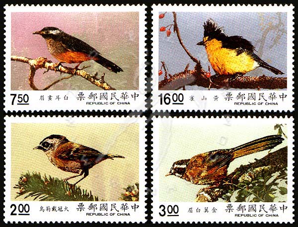 台湾鸟类,火冠戴菊鸟、金翼白眉、白耳画眉及黄山雀4全