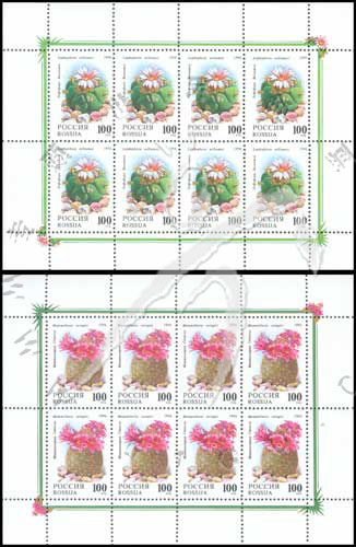 热带花卉,仙人科花2枚小版张(各8票共16票)