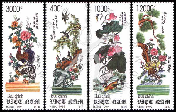 绘画,国画春、夏、秋、冬花卉及鸟等4全