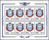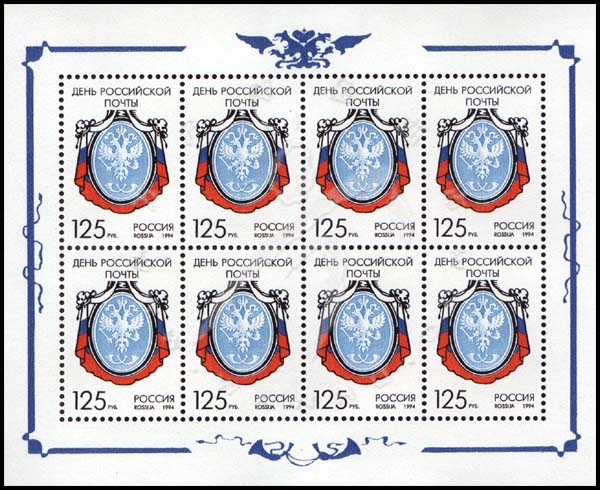 俄罗斯邮政日,双头鹰盾徽等小版张(8票)